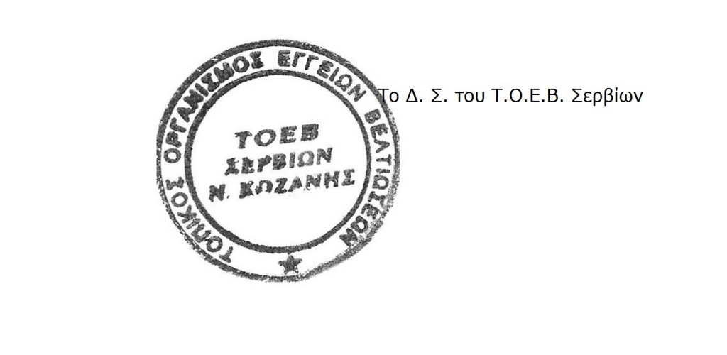 Το Δ.Σ. του Τ.Ο.Ε.Β. Σερβίων γνωστοποιεί τα εξής: