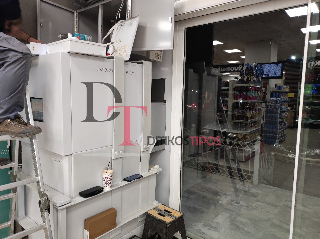 Κατεβασμένα ρολά θα βρίσκουν πλέον μπροστά τους όσοι πολίτες επισκεφτούν το παλαιό κατάστημα της Εθνικής Τράπεζας της Ελλάδος, για να χρησιμοποιήσουν το Μηχάνημα Ανάληψης Μετρητών που είχε παραμείνει εκεί μετά το κλείσιμο της Τράπεζας.