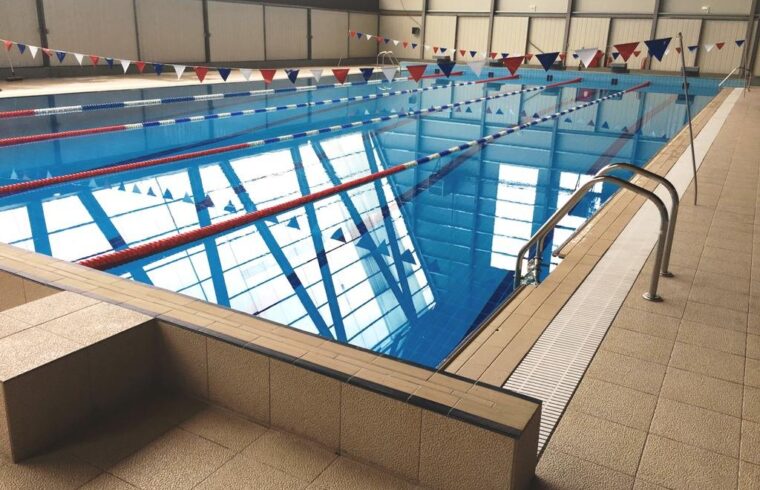 Η κολυμβητική δεξαμενή θα έχει διαστάσεις 25 x 15,50 x 2,0 μέτρα και έξι διαδρόμους, ώστε να φιλοξενεί και αγώνες water polo. Στον εξοπλισμό περιλαμβάνεται μεταξύ άλλων, αυτόματο σύστημα κάλυψης της κολυμβητικής δεξαμενής για την ελαχιστοποίηση της εξάτμισης και φορητό σύστημα μείωσης του βάθους της, ώστε να χρησιμοποιείται για εκμάθηση κολύμβησης μικρών παιδιών, για φυσικοθεραπεία ΑΜΕΑ σε υδάτινο περιβάλλον, καθώς και για άλλες δραστηριοτήτες.