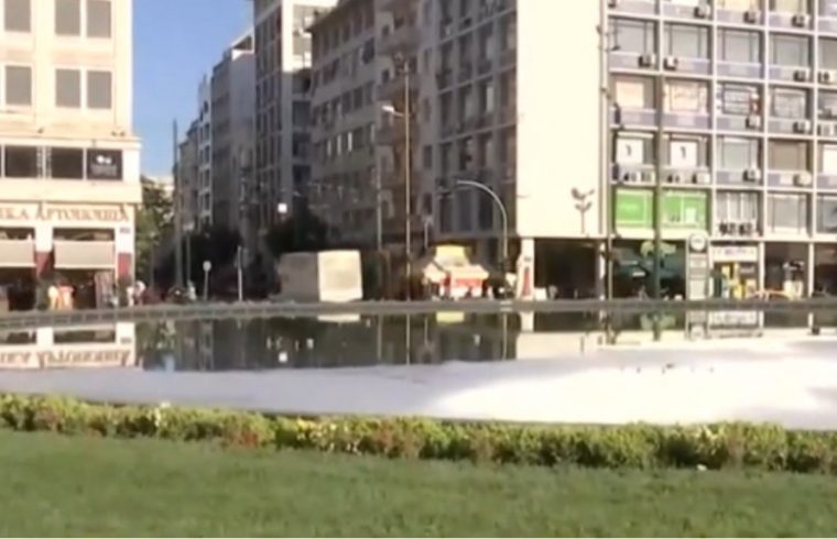 Περισσότερο με τζακούζι, έμοιαζε σήμερα το συντριβάνι της πλατείας Ομονοίας, καθώς ήταν γεμάτο με… σαπουνάδες.