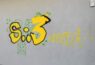 Φρέσκα, χθεσινοβραδινά γκράφιτι στους καινούριους μονωμένους τοίχους του 1ου Γυμνασίου. Και το προαύλιο γεμάτο σπασμένα γυαλιά από μπουκάλια μπίρας.