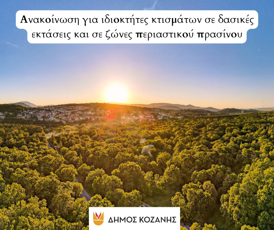 //Δήμος Κοζάνης: Ανακοίνωση για ιδιοκτήτες κτισμάτων σε δασικές εκτάσεις και σε ζώνες περιαστικού πρασίνου