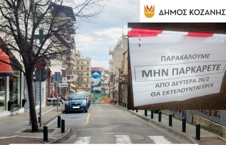 Δήμος Κοζάνης: Κλειστή από τη Δευτέρα 26 Φεβρουαρίου η οδός Ερμού μεταξύ Βενιζέλου και Λασσάνη