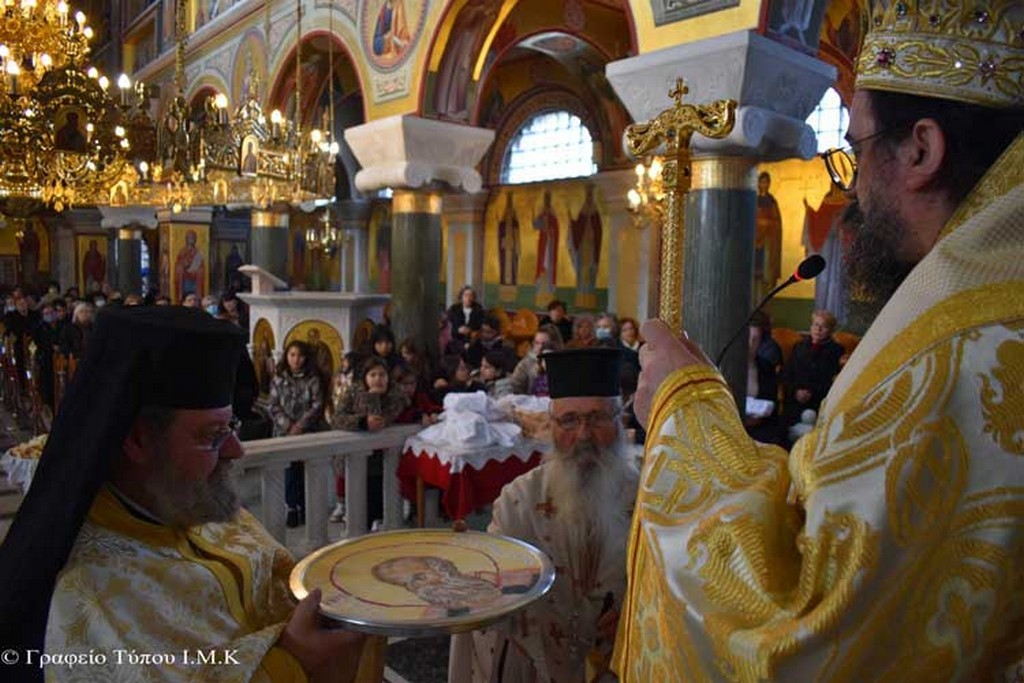 Στόν γεμάτο ἀπό πιστούς Ναό, ὁ Σεβασμιώτατος εὐλόγησε τήν βασιλόπιτα καί μίλησε στούς κατοίκους, διαβάζοντας δύο κείμενα ἀπό τό βιβλίο πού ἐξέδωσε μέ τίτλο «Ἐνιαύσιοι λόγοι».