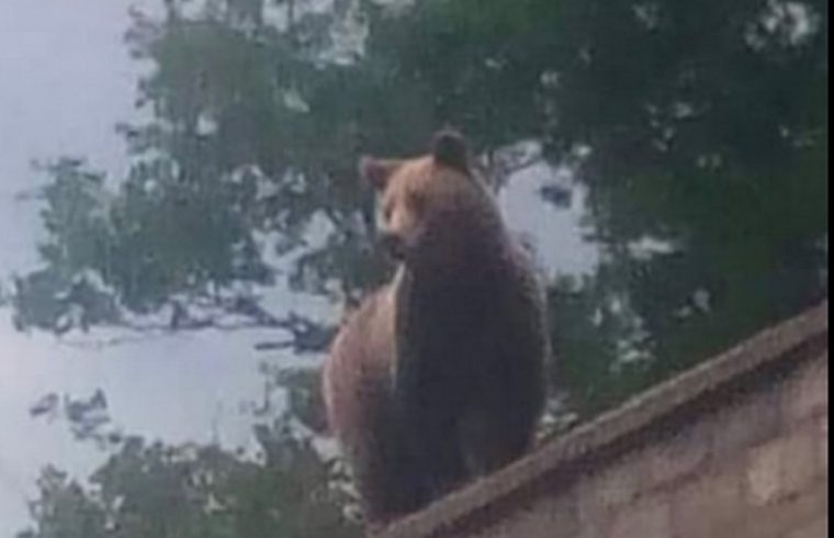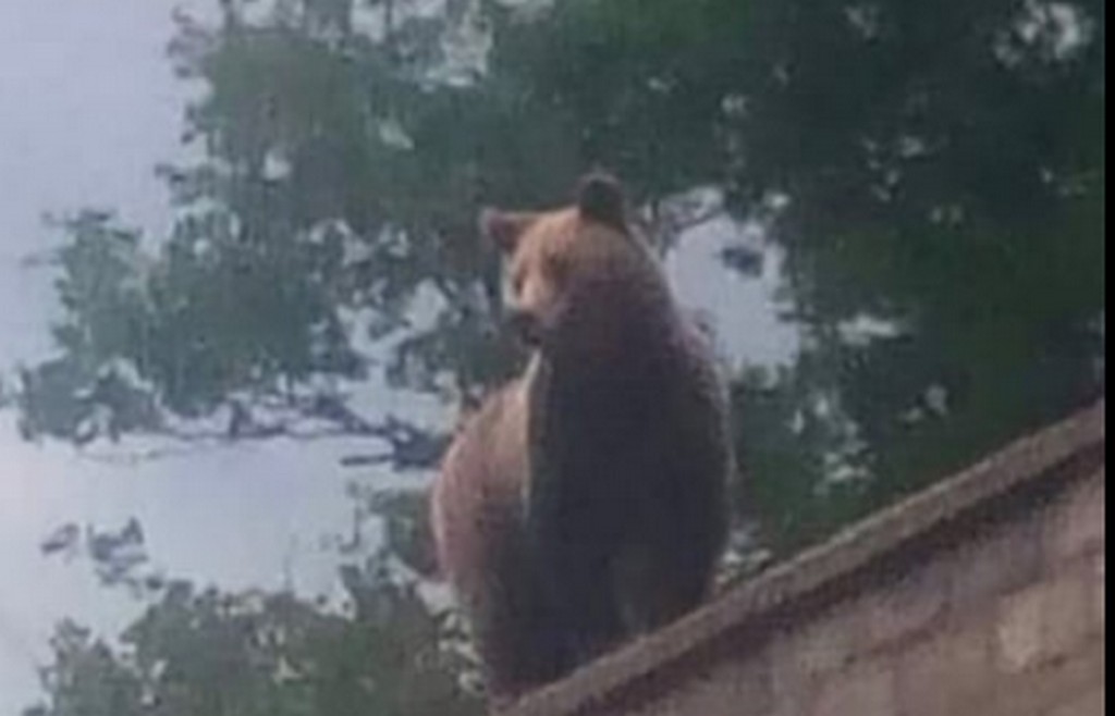 Περαστικός πρόλαβε να φωτογραφίσει την αρκούδα επάνω στον τοίχο του μοναστηριού.