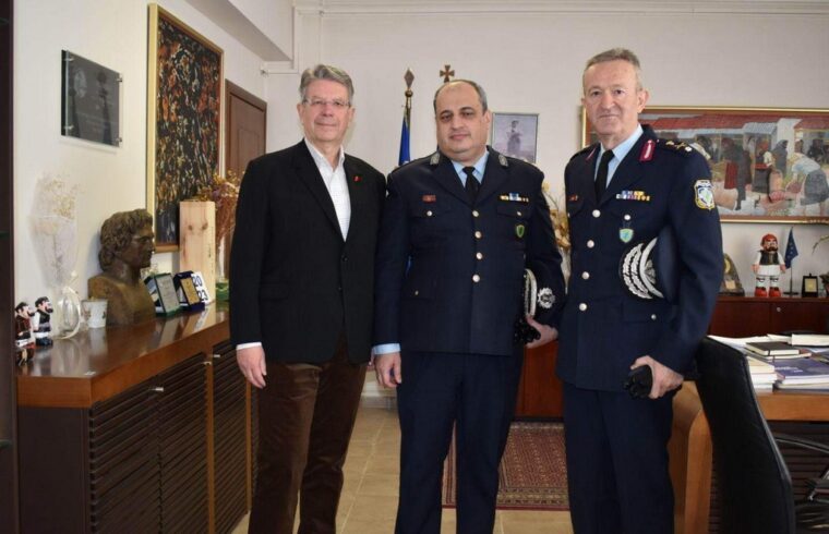 Ο Γενικός Περιφερειακός Αστυνομικός Διευθυντής Δυτικής Μακεδονίας, Ταξίαρχος κ. Σπυρίδων ΔΙΟΓΚΑΡΗΣ, συνοδευόμενος από τον Διευθυντή της Διεύθυνσης Αστυνομίας Φλώρινας, Αστυνομικό Υποδιευθυντή κ. Παναγιώτη ΓΕΩΡΓΙΑΔΗ, επισκέφθηκε σήμερα (20-02-2023) το πρωί τον Αντιπεριφερειάρχη Π.Ε. Φλώρινας κ. Σωτήριο ΒΟΣΔΟΥ, καθώς επίσης και τον Δήμαρχο Φλώρινας κ. Βασίλειο ΓΙΑΝΝΑΚΗ.