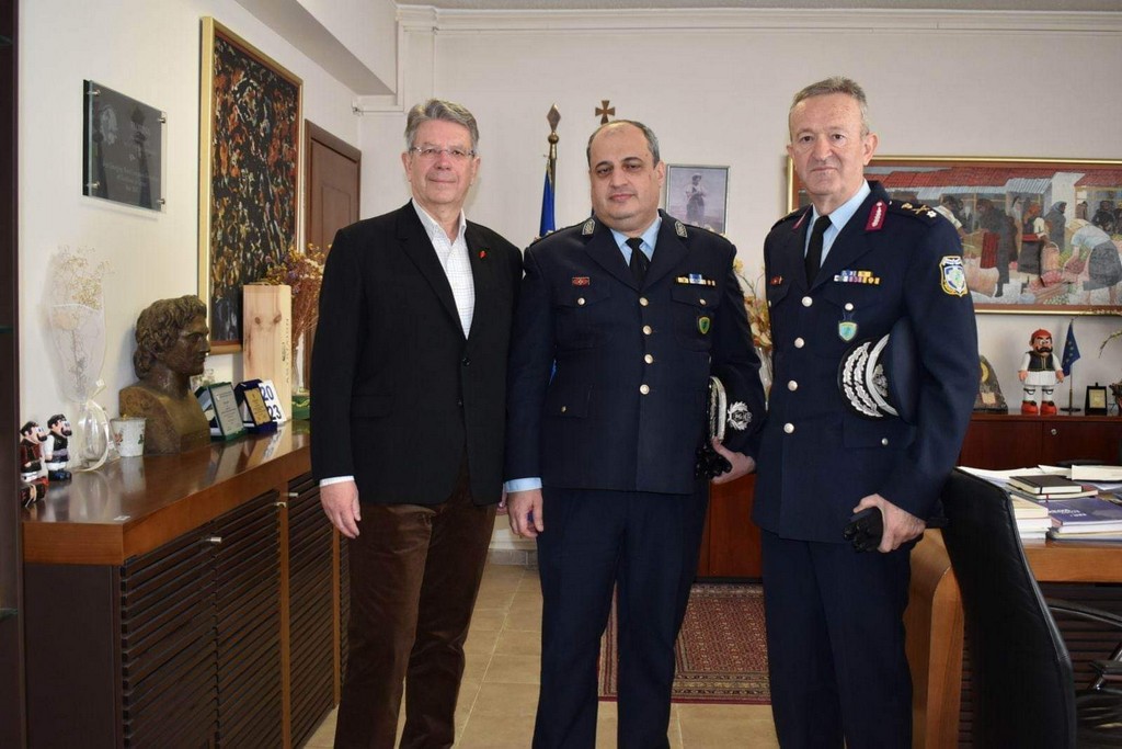 Ο Γενικός Περιφερειακός Αστυνομικός Διευθυντής Δυτικής Μακεδονίας, Ταξίαρχος κ. Σπυρίδων ΔΙΟΓΚΑΡΗΣ, συνοδευόμενος από τον Διευθυντή της Διεύθυνσης Αστυνομίας Φλώρινας, Αστυνομικό Υποδιευθυντή κ. Παναγιώτη ΓΕΩΡΓΙΑΔΗ, επισκέφθηκε σήμερα (20-02-2023) το πρωί τον Αντιπεριφερειάρχη Π.Ε. Φλώρινας κ. Σωτήριο ΒΟΣΔΟΥ, καθώς επίσης και τον Δήμαρχο Φλώρινας κ. Βασίλειο ΓΙΑΝΝΑΚΗ.