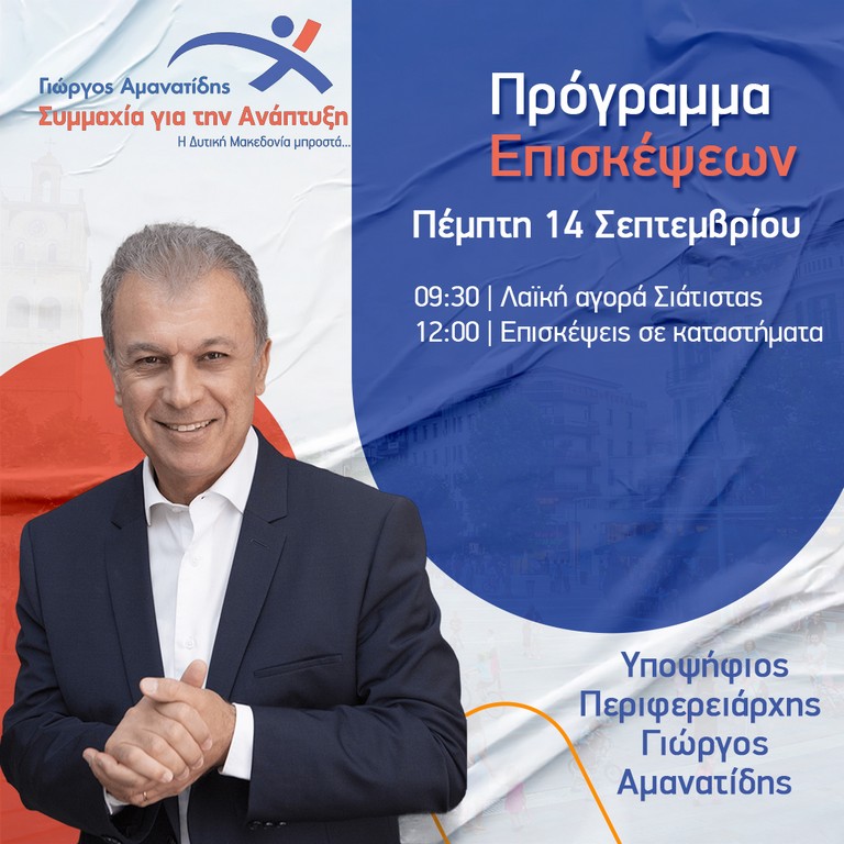Την αγορά της Πτολεμαΐδας επισκέφθηκε σήμερα ο υποψήφιος Περιφερειάρχης Δυτικής Μακεδονίας Γιώργος Αμανατίδης μαζί με υποψήφιους Περιφερειακούς Συμβούλους.