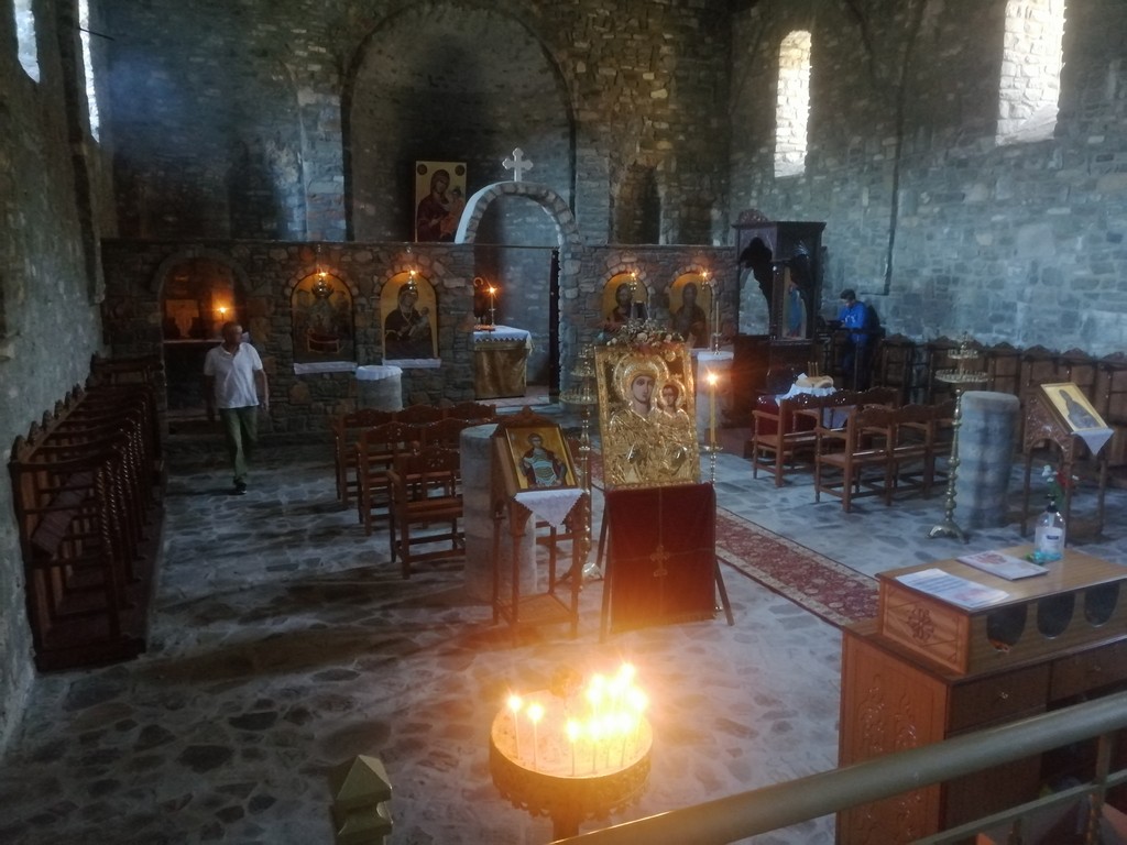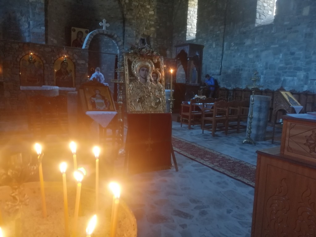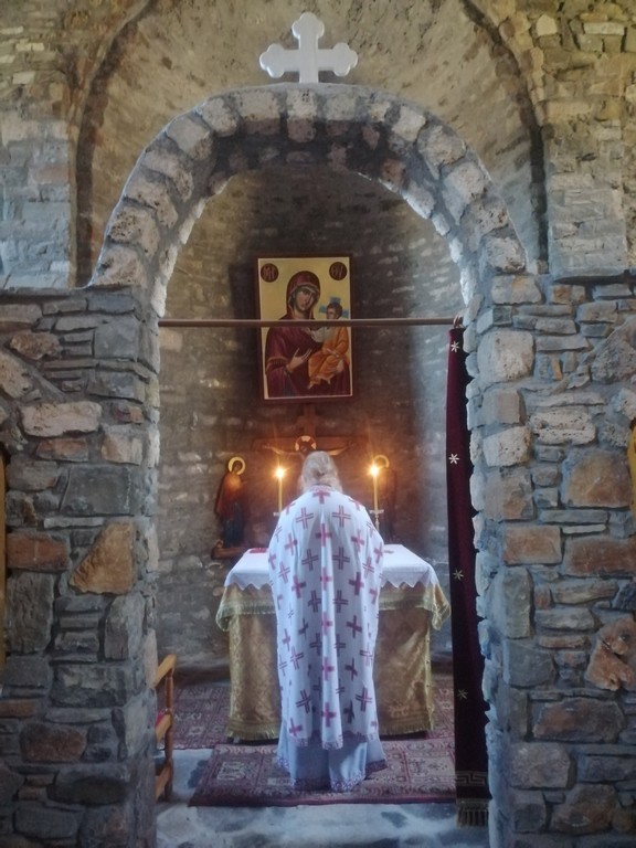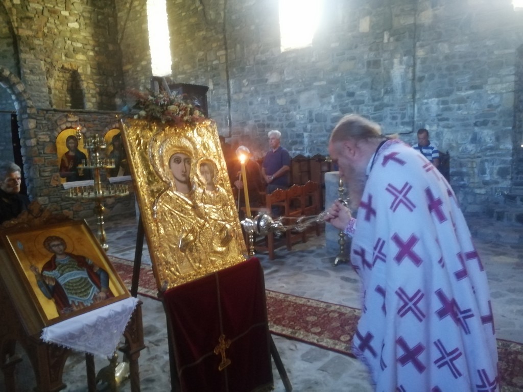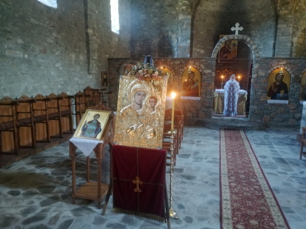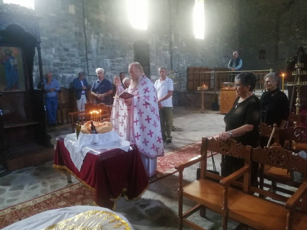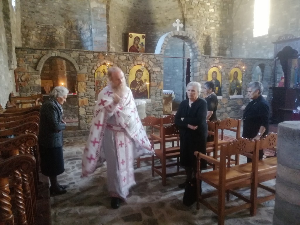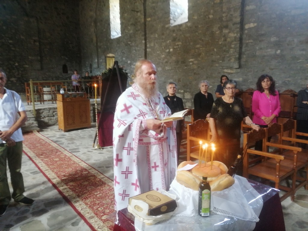 Προηγήθηκε, μέσα σε πλήρως κατανυκτικό κλίμα, πανηγυρική Θεία Λειτουργία, την οποία παρακολούθησαν οι λιγοστοί κάτοικοι που διαμένουν, μέχρι πριν τον χειμώνα, στην κοινότητα. Στο τέλος της Θείας Λειτουργίας, τελέσθηκε και Αρτοκλασία με φροντίδα της Φιλοπτώχου Αδελφότητος Κυριών Άργους Ορεστικού, που συνήθως τέτοια μέρα βρίσκονται εκεί, προκειμένου να μεταφέρουν οι ίδιες την θαυματουργή εικόνα στο Άργος Ορεστικό. Φέτος όμως δεν κατέστη δυνατή η εκεί παρουσία τους.