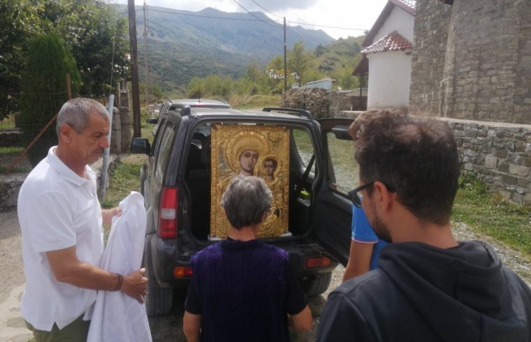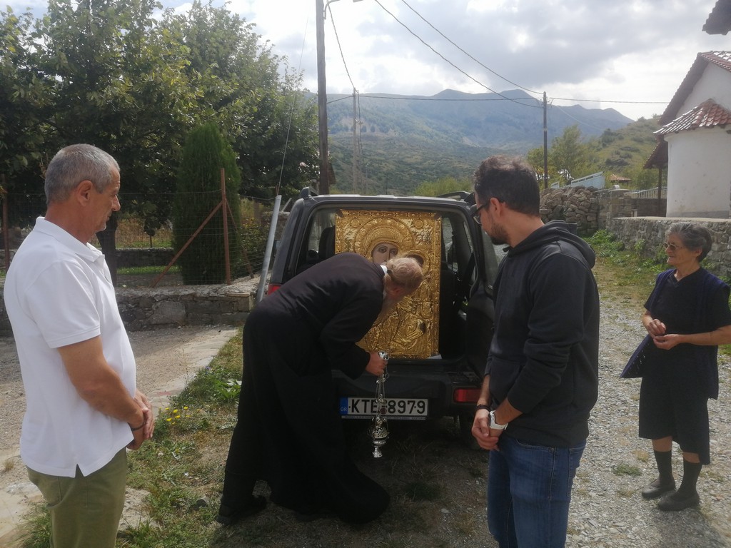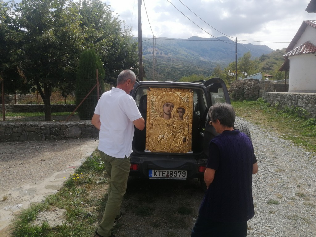 Μετά το περάς των Ιερών Ακολουθιών, έγινε η έξοδος της Ιεράς Εικόνας, η επιβίβαση της σε όχημα, προκειμένου να «κατέβει» στο Άργος Ορεστικό. Οι λιγοστοί κάτοικοι, με βαθια συγκινήση, την αποχειρέτησαν ακόμα και εντός του οχήματος, με την ευχή και του χρόνου να αξιωθούν για τα «Ανεβάσματα» της Παναγίας στη Γράμμουστα, με υγεία προτίστως και με χαρές για όλους!