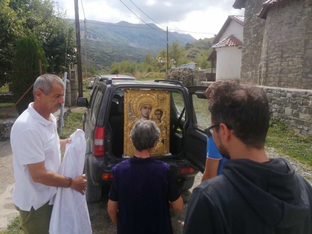 Μετά το περάς των Ιερών Ακολουθιών, έγινε η έξοδος της Ιεράς Εικόνας, η επιβίβαση της σε όχημα, προκειμένου να «κατέβει» στο Άργος Ορεστικό. Οι λιγοστοί κάτοικοι, με βαθια συγκινήση, την αποχειρέτησαν ακόμα και εντός του οχήματος, με την ευχή και του χρόνου να αξιωθούν για τα «Ανεβάσματα» της Παναγίας στη Γράμμουστα, με υγεία προτίστως και με χαρές για όλους!