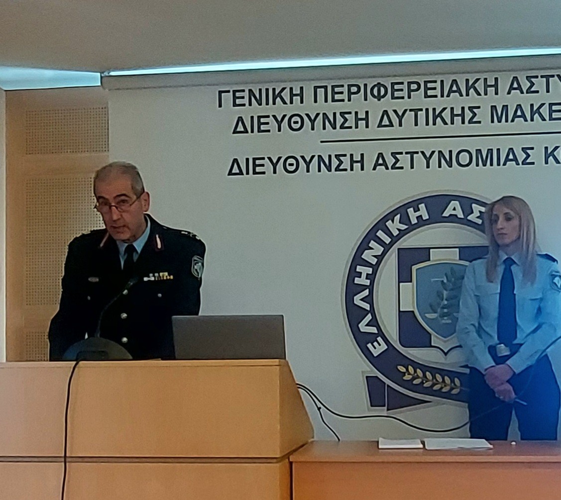 Ακολούθως, χαιρετισμό απηύθυναν ο Διευθυντής της Διεύθυνσης Αστυνομίας Κοζάνης, Αστυνομικός Διευθυντής κ. Ηλίας ΤΣΙΟΤΣΙΑΣ και ο Πρόεδρος της Ένωσης Αξιωματικών Ελληνικής Αστυνομίας Δυτικής Μακεδονίας, κ. Δημήτριος ΜΑΝΤΑΛΙΑΣ, οι οποίοι αφού ευχαρίστησαν τους συμμετέχοντες στην εκπαιδευτική ημερίδα, τόνισαν ότι είναι ιδιαιτέρως τιμητική η παρουσία καθηγητών του Πανεπιστημίου Δυτικής Μακεδονίας καθώς και των ειδικών συνεργατών αυτού στο Αστυνομικό Μέγαρο Κοζάνης, οι οποίοι μεταλαμπαδεύουν τις γνώσεις και την εμπειρία τους στους εκπαιδευόμενους, δίνοντας λύσεις στις ανησυχίες τους.
