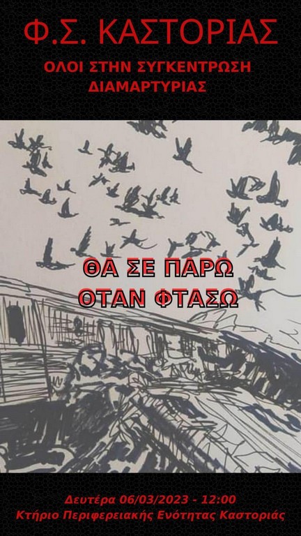 Ο Αγροτικός Σύλλογος Καστοριάς «Μακεδνός» καλεί όλα τα μέλη και τους φίλους του να συμμετέχουν στην κινητοποίηση-διαμαρτυρία της Δευτέρας στις 13:00 και όλη την διάρκεια της ημέρας στην αντιπεριφέρεια Καστοριάς για το εγκληματικό δυστύχημα στα Τεμπη, δεν φταίει μόνο ο σταθμάρχης και οι πολιτικοί, πρέπει η κοινωνία που διαμορφώσαμε αποδεχόμενοι και θεωρώντας πλέον φυσιολογικά τα ρουσφέτια, τις απευθείας αναθέσεις, τους «κομματικούς» διορισμούς, τον χαρακτηρισμό των απεργιών ως παράνομες, τα μνημόνια, την κλοπή δημοσίου χρήματος, την απαλλαγή υπουργών από τις ευθύνες και αλλά τόσα που δεν χωράνε οι σελίδες να τα γράψουμε, να αλλάξει και για να αλλάξει πρέπει να αλλάξουμε πρώτα εμείς, ήρθε η ώρα να σηκωθούμε από τον καναπέ και να αντιδράσουμε, χθες ήταν τα παιδιά στα Τεμπη αύριο θα είναι τα δικά μας παιδιά.