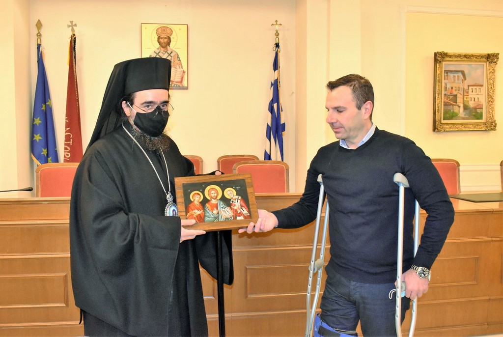 Ο Δήμαρχος ευχαρίστησε τον Σεβασμιότατο για την τέλεση του Αγιασμού και την εικόνα που προσέφερε στον Δήμο, ευχόμενος επίσης για υγεία και καλή συνεργασία.