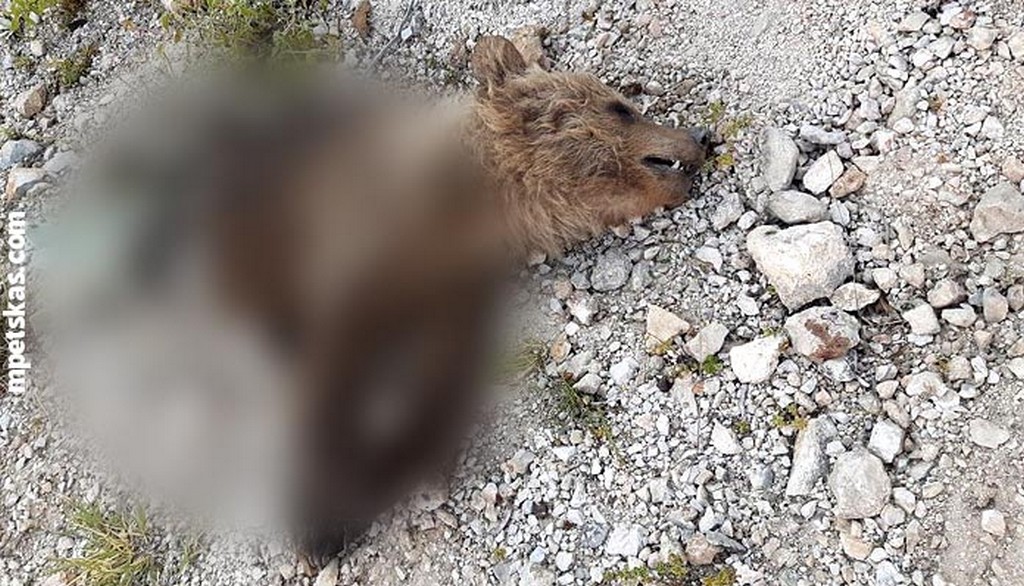 Χθες γύρω στις 6 τα απόγευμα περιπατητές που έκαναν την βόλτα τους στο βουνό της ψαλίδας, στον δρόμο πάνω από την Χλόη, αντίκρισαν ένα αποτρόπαιο θέαμα. Ένα μικρό αρκουδάκι κομμένο στα δύο.