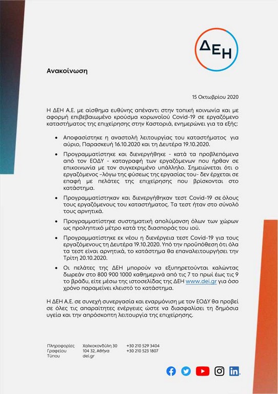 Τοπικά Νέα15 Οκτωβρίου 2020 Καστοριά: H ΔΕΗ ανακοίνωσε κρούσμα – Αναστελλέται η λειτουργία του καταστήματος Spread the loveΜε έγγραφη ανακοίνωση της η ΔΕΗ στην Καστοριά, γνωστοποιήσε την ύπαρξη επιβεβαιωμένου κρούσματος που αφορά εργαζόμενο στο κατάστημα της. Αναλυτικά η ανακοίνωση της ΔΕΗ e-ptolemeos.gr TAGS: ΚρούσμαΔΕΗΚαστοριά Spread the love Related posts Γ. Κορεντσίδης: Έξι χρόνια μετά,…Φεστιβάλ…ερωτημάτωνΠνίγηκε 45χρονος Καστοριανός εργαζόμενος στην…Εξαφανίστηκε 17χρονος Καστοριανός στην Αθήνα…Άργος Ορεστικό: Σοκαριστικό τροχαίο ατύχημα…Βαρύ πένθος στο Μελάνθιο –…Άργος Ορεστικό: Αρκούδα «βολτάρει» λίγα…Η Καστοριά είναι οκ και…Άργος Ορεστικό: Νεαρός σε κατάσταση…Δημήτρης Μόσχος: Δεχθήκαμε απειλές για…
