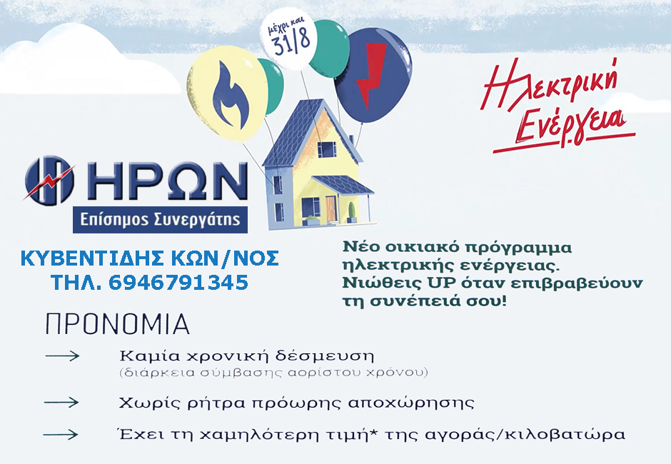 Μην καθστερείς καθόλου, έλα αμέσωσε σε επαφή με τον ΕΠΙΣΗΜΟ ΣΥΝΕΡΓΑΤΗ του ΗΡΩΝΑ για να μάθεις όλες τις λεπτομέρεις και πως θα μπορέσεις να εξοικονομήσεις αρκετά χρήματα από τους λογαριασμούς ρεύματος!