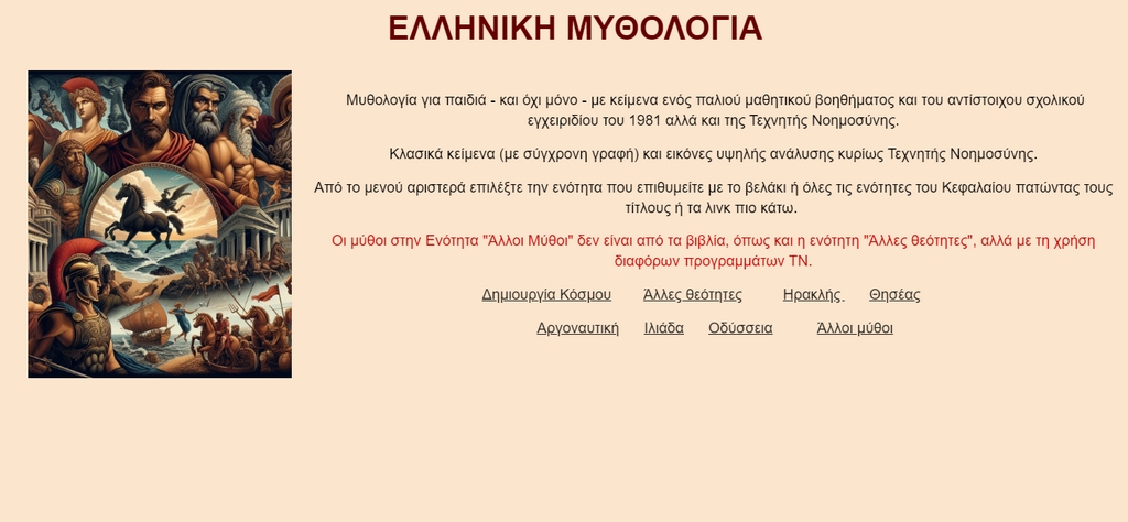 Μυθολογία για παιδιά – και όχι μόνο – με κείμενα ενός παλιού μαθητικού βοηθήματος και του αντίστοιχου σχολικού εγχειριδίου του 1981 αλλά και της Τεχνητής Νοημοσύνης.