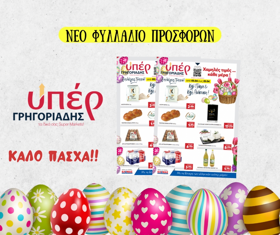 Με ασύγκριτες προσφορές σε δεκάδες προϊόντα, ξεκινά η Πασχαλινή περίοδος στην αλυσίδα των Σούπερ Μάρκετ ΥΠΕΡ Γρηγοριάδη!