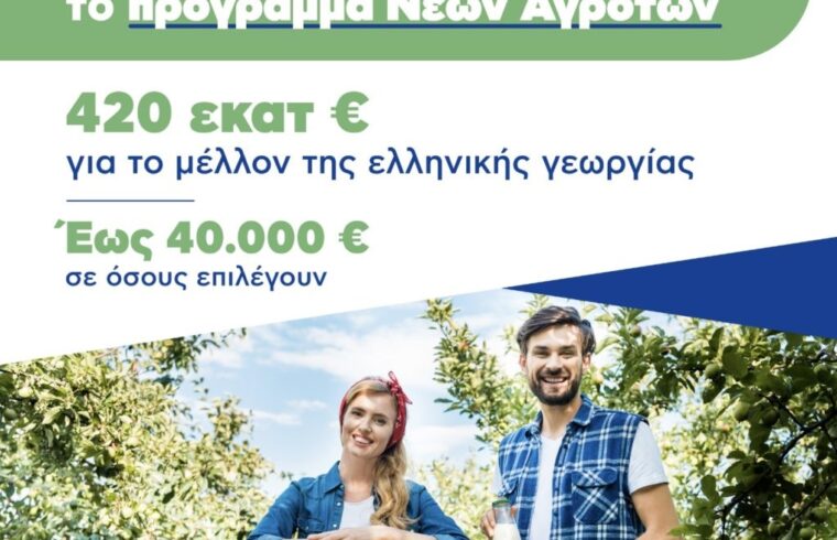 Άνοιξε η πλατφόρμα υποβολής των αιτήσεων για ένταξη στο νέο πρόγραμμα των «Νέων Γεωργών» (υπομέτρο 6.1) συνολικού προϋπολογισμού 420 εκατ. ευρώ, με την καταληκτική ημερομηνία να έχει οριστεί η Τρίτη, 14 Δεκεμβρίου 2021, όπως αναφέρεται στην πρόσκληση.