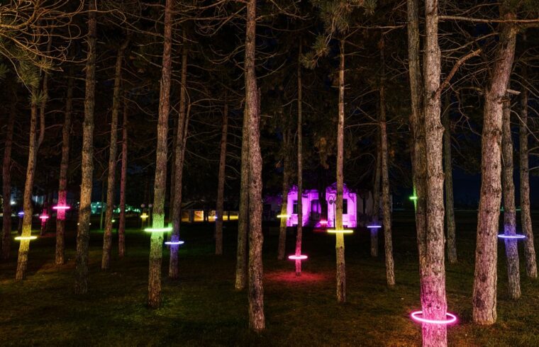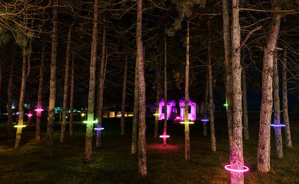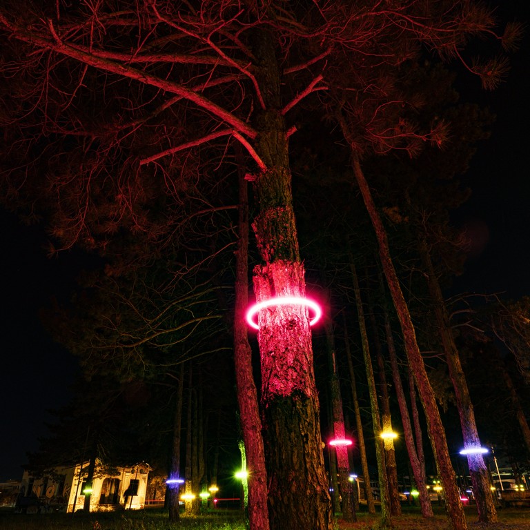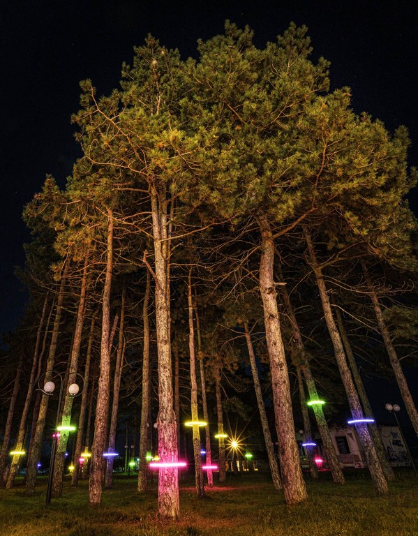 Ο Δήμος Εορδαίας στο πλαίσιο του στολισμού χαρακτηριστικών σημείων της πόλης, σε συνεργασία με την κ. Εμορφίλη Τσιμπλίδου (Lighting Designer) και τους συνεργάτες της, έχουν δημιουργήσει ένα θεαματικό και πρωτότυπο φωτισμό μπροστά από το κτίριο του Αγροκηπίου, τοποθετώντας φωτισμένα στεφάνια περιμετρικά σε κορμούς δέντρων σε διάφορα ύψη εκπέμποντας φως σε 4 χρώματα, αναβοσβήνοντας με ρυθμό χαλαρό, υποδηλώνοντας τον παλμό της καρδιάς.