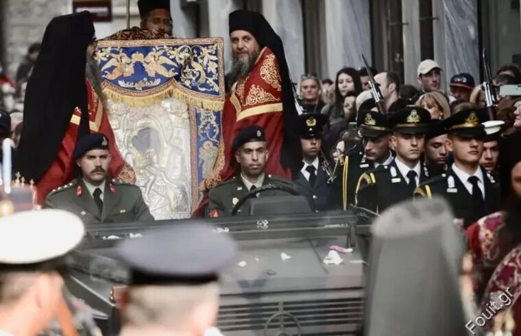 Στην Αθήνα από χθες η ιερά εικόνα της Παναγίας «Άξιον Εστι», όπου με τη συνοδεία μελών της ιερής κοινότητας της Μοναστικής Πολιτείας, τελέστηκε η επίσημη υποδοχή της στην πλατεία της Μητρόπολης Αθηνών, παρουσία του Αρχιεπισκόπου Αθηνών και πάσης Ελλάδος Ιερωνύμου και εκπροσώπων της πολιτικής και πολιτειακής ηγεσίας.
