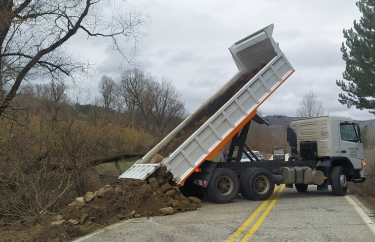 - Ενίσχυση πρανούς στον δρόμο για Κομνηνάδες.