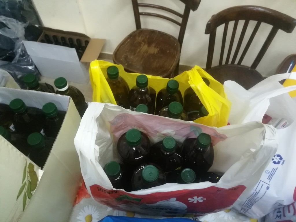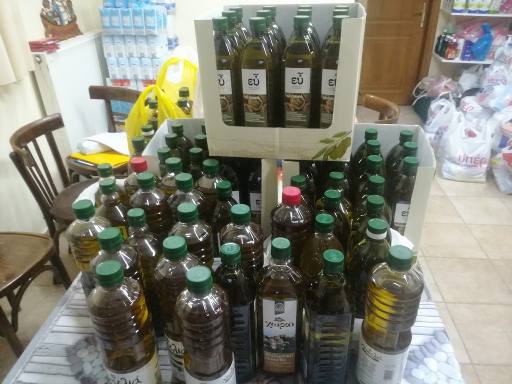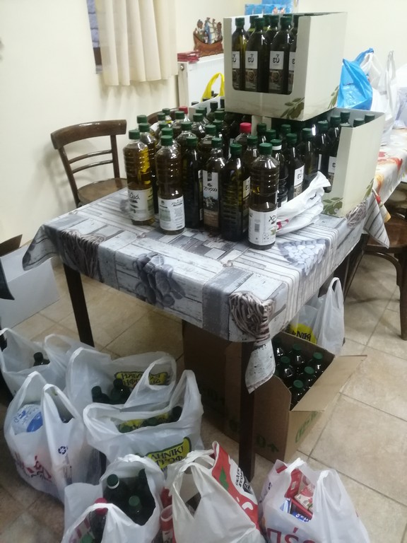 Ξεχωριστή περίπτωση όμως αποτελεί μια μεγάλη παρέα νέων ανθρώπων, η οποία μετά το ρεπορτάζ μας, έδρασε αθόρυβα και κάταφερε να συγκεντρώσει 138 λίτρα ελαιόλαδου και περίπου 10 σακούλες με διάφορα τρόφιμα. Μάλιστα οι νέοι, κατά επιθυμίας τους, προτιμούν να παραμείνουν ανώνυμοι, παρέδωσαν σήμερα το απόγευμα της Πέμπτης το λάδι στην Τράπεζα Τροφίμων. Τα μέλη της παρέας που έκανε αυτή την πρωτοφανή και άξια κάθε επαίνου προσπάθεια, υποδέχθηκε ο εφημέριος του Ιερού Ναού Πρωτοπρεσβύτερος π. Λεωνίδας Μπάρδος, ο οποίος απήυθηνε θερμές ευχαριστίες προς όλους! Οι νέοι ρώτησαν τον πατέρα Λεωνίδα πόσες οικογένειες λαμβάνουν βοήθεια από την Τράπεζα Τροφίμων, για να λάβουν την απάντηση πως κάθε μήνα βοηθούνται 160 οικογένειες! Χαρακτηριστική ήταν η αντίδραση των νέων που ανέφεραν πως για 30 λίτρα δεν καταφέραμε να πάρουν όλοι! Όμως τους καθησύχασε ο Πατέρας Λεωνίδας, καθώς τους είπε πως μετά την προσπάθεια των τελευταίων ημερών υπάρχει η ποσότητα ώστε όλοι να πάρουν και λάδι!