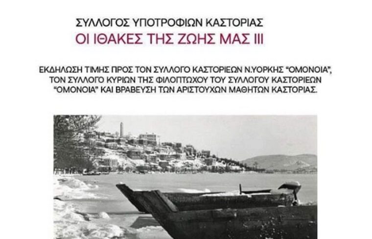 Σας προσκαλούμε να παραβρεθείτε στην 23η Ετήσια Εκδήλωση του Συλλόγου Καστοριέων Ομόνοια της Νέας Υόρκης για τη βράβευση των αριστούχων μαθητών Καστοριάς στο Αρχοντικό Τσιατσιαπά Σάββατο 19 Αυγούστου και ώρα 18:30!