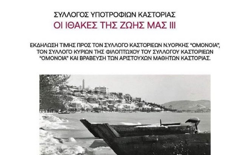 Σας προσκαλούμε να παραβρεθείτε στην 23η Ετήσια Εκδήλωση του Συλλόγου Καστοριέων Ομόνοια της Νέας Υόρκης για τη βράβευση των αριστούχων μαθητών Καστοριάς στο Αρχοντικό Τσιατσιαπά Σάββατο 19 Αυγούστου και ώρα 18:30!