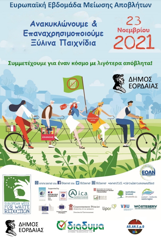 Το θέμα της φετινής Ευρωπαϊκής Εβδομάδας Μείωσης Αποβλήτων είναι: «Κοινότητες Κυκλικής Οικονομίας» και ο Δήμος Εορδαίας συμμετέχει μέσω της δράσης «Ανακυκλώνουμε & Επαναχρησιμοποιούμε Ξύλινα Παιχνίδια».