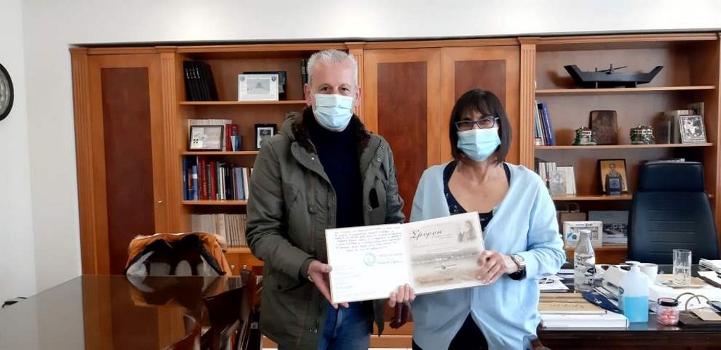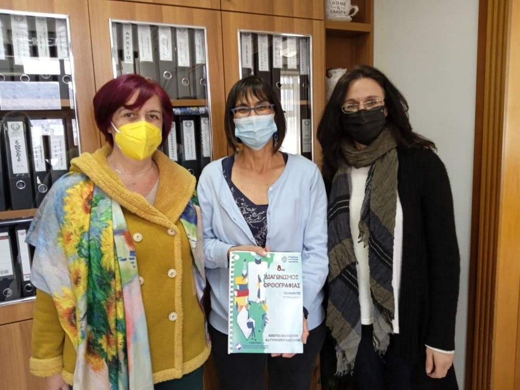 Η Αντιπεριφερειάρχης, με την Πρόεδρο και τη Γενική Γραμματέα του Συνδέσμου Φιλολόγων Καστοριάς, Αγγελική Μπαλτατζή και Στέλλα Μπίλιου, όπου παραδόθηκε υλικό που προμηθεύτηκε η Π.Ε. Καστοριάς για τον 8ο Διαγωνισμό Ορθογραφίας μαθητών/τριών Γ΄ Γυμνασίου, που προγραμματίζεται  να διεξαχθεί στις 20 Μαρτίου 2022, στην αίθουσα εκδηλώσεων του 4ου Γυμνασίου Καστοριάς.