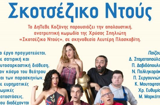 Το ΔηΠεΘε Κοζάνης παρουσιάζει την απολαυστική, ανατρεπτική κωμωδία της Χρύσας Σπηλιώτη «Σκοτσέζικο Ντούς», σε σκηνοθεσία Λευτέρη Πλασκοβίτη. Το «Σκοτσέζικο Ντούς» πραγματεύεται, με σατιρική και αυτοσαρκαστική διάθεση, τον κόσμο του θεάτρου και των παρασκηνίων, με ευρηματικές…