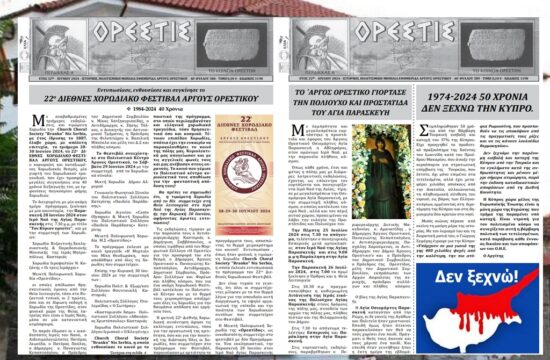 Πιστή στο ραντεβού της, κυκλοφόρησε τον μήνα Ιούνιο και Ιούλιο με το φύλλο της, η μοναδική έντυπη εφημερίδα του Άργους Ορεστικού «Η ΟΡΕΣΤΙΣ» του ομώνυμου Μορφωτικού Συλλόγου της πόλης. Για μια ακόμη φορά στις σελίδες…