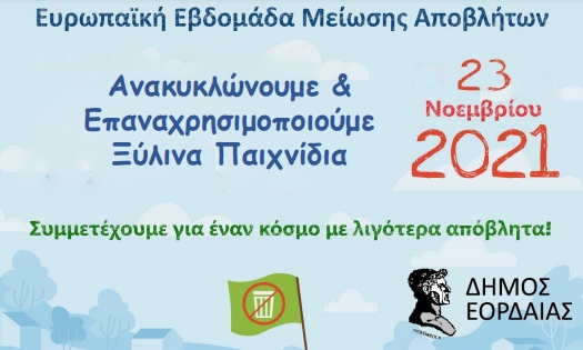 Ο Δήμος Εορδαίας συμμετέχει ενεργά στην Ευρωπαϊκή Εβδομάδα Μείωσης Αποβλήτων, η οποία θα πραγματοποιηθεί το διάστημα 20-28 Νοεμβρίου 2021. Το θέμα της φετινής Ευρωπαϊκής Εβδομάδας Μείωσης Αποβλήτων είναι: «Κοινότητες Κυκλικής Οικονομίας» και ο Δήμος Εορδαίας συμμετέχει…