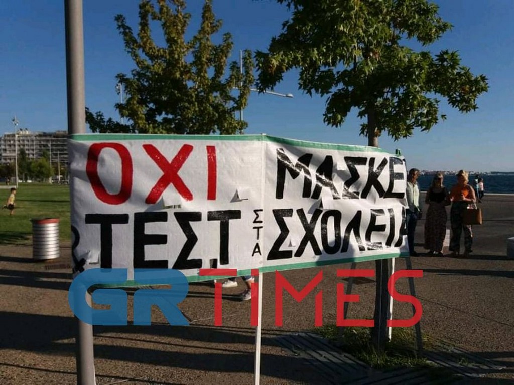 Συγκέντρωση διαμαρτυρίας για τις μάσκες στα σχολεία πραγματοποιείται αυτή την ώρα μπροστά στο άγαλμα του Μεγάλου Αλεξάνδρου, στην Νέα Παραλία Θεσσαλονίκης.