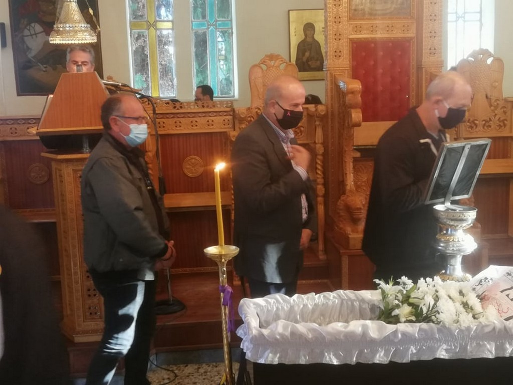 Το παρόν στην εξόδια ακολουθία η οποία τελέστηκε στης 5 η ώρα το απόγευμα στον Ιερό Ναό Κοιμήσεως της Θεοτόκου Άργους Ορεστικού έδωσαν, η υπεύθυνη του γραφείου του πρωθυπουργού στην Θεσσαλονίκη κα. Μαρία Αντωνίου με την όποια ήταν και συνάδελφοι στην Δασική υπηρεσία Καστοριάς, ο εκτελεστικός γραμματέας της περιφέρειας Δυτικής Μακεδονίας κ. Γρηγόρης Γρηγορίαδης, ο Αντιπεριφερειάρχης Καστοριάς κ. Δημήτρης Σαββόπουλος, ο Γενικός συντονιστής οργανωτικού Δυτικής Μακεδονίας της Νέας Δημοκρατίας κ. Στέργιος Αδάμ, αντιδήμαρχοι του Δήμου Άργους Ορεστικού και πλήθος δημοτικών συμβούλων, φίλων και συγγενών οι οποίοι τον συνόδευσαν στην τελευταία του κατοικία. Στο τέλος της εξόδιου ακολουθίας το ψήφισμα του δημοτικού συμβουλίου διάβασε ο Πρόεδρος του, κ. Παναγιώτης Βακόπουλος.