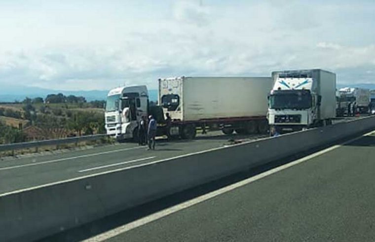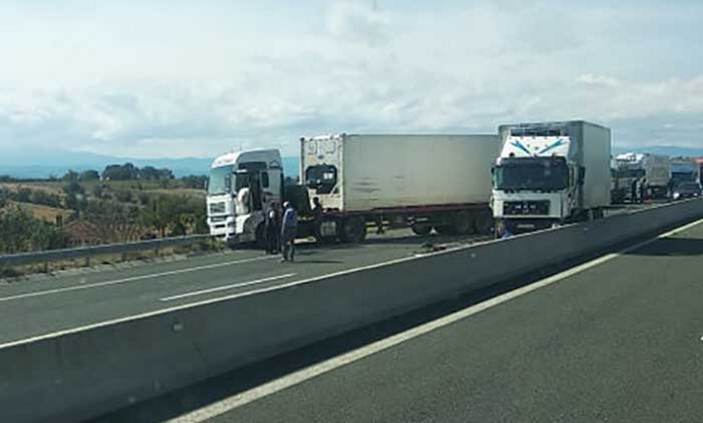 Στο δρόμο, λόγω του ατυχήματος είχε δημιουργηθεί μποτιλιάρισμα μέχρι να τραβηχτούν τα φορτηγά στην άκρη.