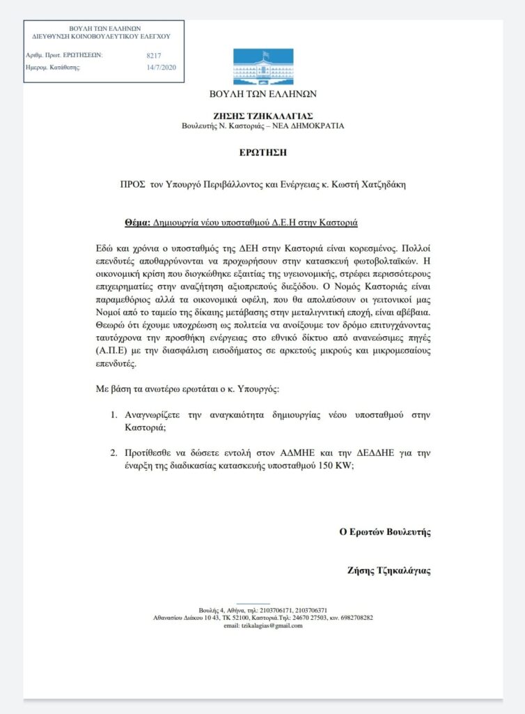 Είναι σίγουρο , πως τα ζητήματα του δικτύου ,που επηρεάζουν συνολικά τον Νόμο Καστοριάς έχουν απασχολήσει και απασχολούν έντονα την πολιτική μου δραστηριότητα όλον αυτόν τον καιρό.